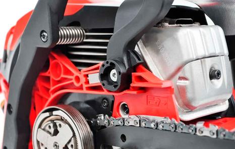 Пильная цепь 3/8" марки "Oregon" оснащена быстронатяжным устройством, чтобы можно было без дополнительных инструментов натянуть или заменить ее, а также легко и просто настроить смазку цепи. Под нужды пользователя настроены такие возможности, как замена воздушного фильтра вручную без инструментов, простое открытие бензобака и маслобака, что только подчеркивает простоту технического обслуживания и практичного применения прибора.