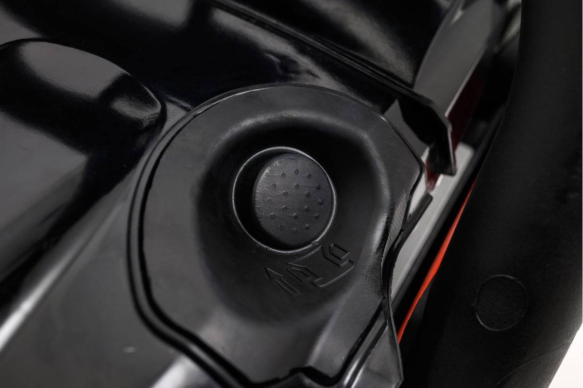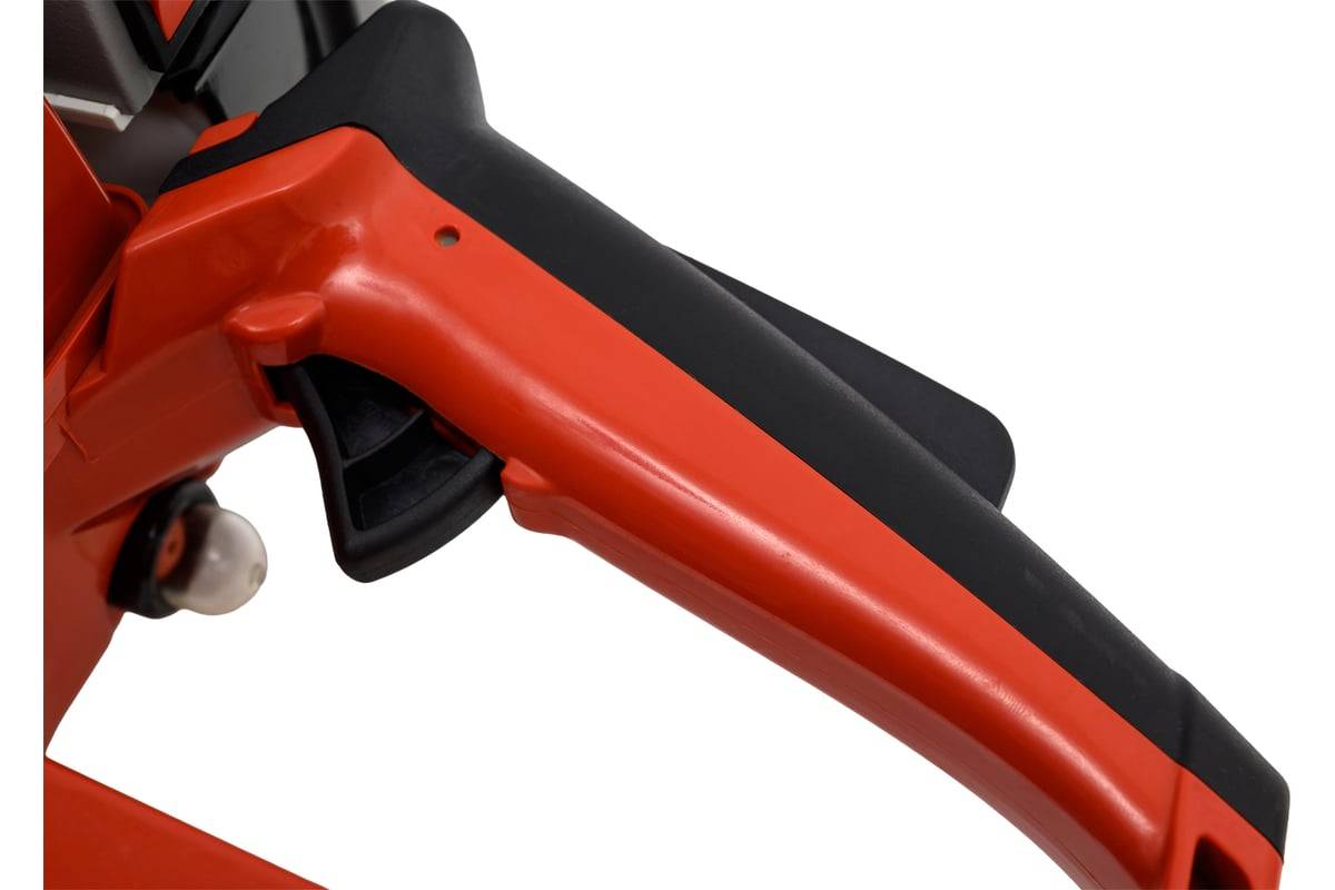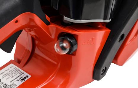 Пильная цепь оснащена боковым натяжителем цепи - это позволяет произвести настройку цепи без использования дополнительных инструментов. Модель очень проста и безопасна в использование.