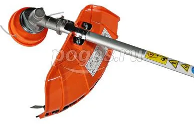 Универсальный защитный кожух подходит для использования с ножом-косой, которая облегчает срезание жестких зарослей, или кордовой головкой для травы. Заменить оснастку при этом можно просто и безопасно. Система легкого старта отвечает за бесперебойный запуск мотора без чрезмерного приложения усилий. Праймер подкачки топлива облегчает включение двигателя в сложных условиях. Наличие возвратного механизма стартера постоянно поддерживает инструмент в готовом к работе состоянии. Это обусловлено тем, что он автоматически приводит его в стартовое положение для быстрого последующего запуска.