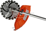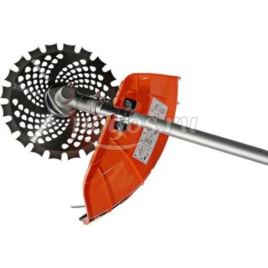 Универсальный защитный кожух подходит для использования с ножом-косой, которая облегчает срезание жестких зарослей, или кордовой головкой для травы. Заменить оснастку при этом можно просто и безопасно. Система легкого старта отвечает за бесперебойный запуск мотора без чрезмерного приложения усилий. Праймер подкачки топлива облегчает включение двигателя в сложных условиях. Наличие возвратного механизма стартера постоянно поддерживает инструмент в готовом к работе состоянии. Это обусловлено тем, что он автоматически приводит его в стартовое положение для быстрого последующего запуска.