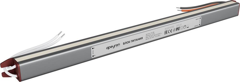 Блок питания ультратонкий 72Вт 24В 3А IP67, артикул: 03-189
