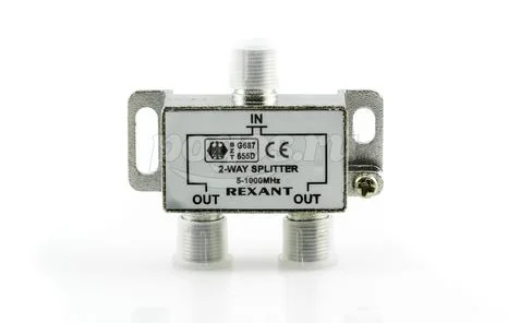 Делитель ТВ краб х2 под F разъем 5-1000 МГц REXANT 05-6001 предназначен для разделения телевизионного сигнала.