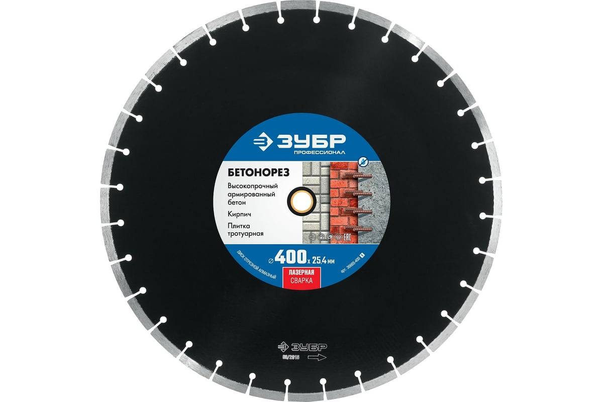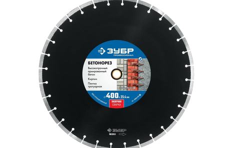 Диск алмазный 400*25,4 широкий сегмент по бетону для спец.инструмента сухой и мокрый рез ЗУБР, артикул: 36665-400