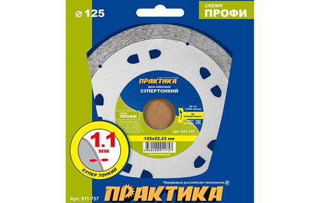 Диск алмазный несегментный 125 х 22 х 10 мм толщина 1,1мм ПРАКТИКА, артикул: 911-757