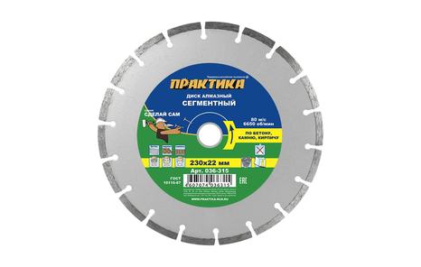 Диск алмазный сегментный 230 х 22 мм ПРАКТИКА, артикул: 036-315