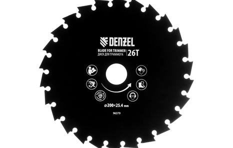 Диск для триммера 200*25,4 с долотообразной формой зуба 26 зубов DENZEL, артикул: 96379