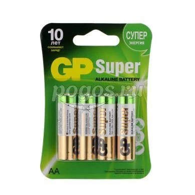 Элемент питания АА LR6 Super (упаковка 4шт) GP, артикул: 04145 / 19408