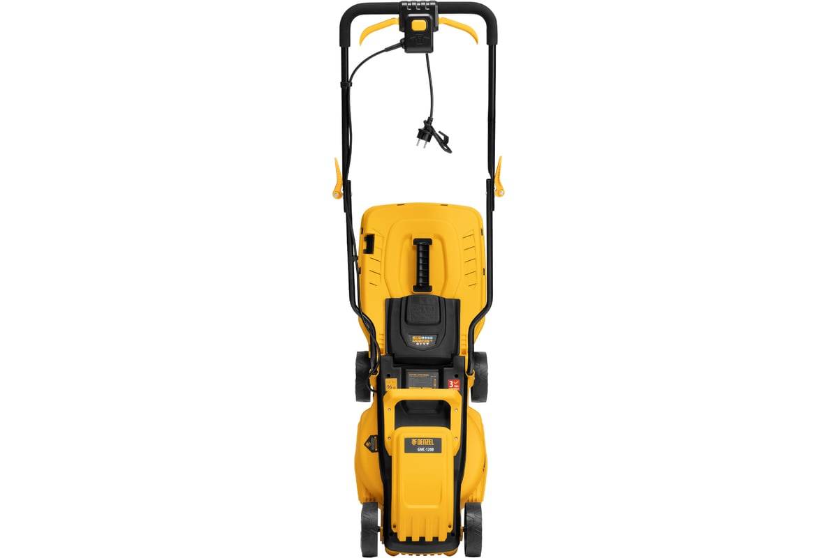 Электрическая газонокосилка Denzel GMC-1200 96628 мощностью 1200 Вт, с травосборником объемом 30 л, обеспечивает ширину скашивания 32 см и позволяет регулировать высоту скашивания — предусмотрено 3 уровня. Предназначена для ухода за газоном и садом, оптимальна для бытового применения. Можно выбрать тип травяного покрытия, установив 1 из 3 уровней высоты в диапазоне от 25 до 65 мм. Газонокосилка пригодится владельцам небольших дачных участков.