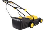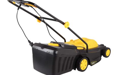 Травосборник увеличен до 45 литров, это позволяет реже останавливать агрегат для его высвобождения. Корпус электрогазонокосилки также выполнен из прочного и легкого пластика, установлен на раму с колесами, что упрощает передвижение устройства по земле.