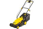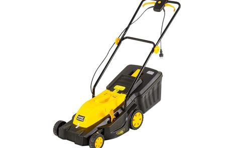 Травосборник электрической газонокосилки выполнен из прочного пластика и способен вместить до 45 литров скошенной травы, что сокращает количество перерывов для его освобождения. Колеса позволяют без усилий перемещать устройство по любой поверхности. Компактные размеры и вес 13,5 кг обеспечивают удобство в использовании и хранении.