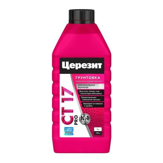 Грунт Ceresit CT17 для впитывающих оснований предназначен для подготовки поверхности перед нанесением штукатурки, напольных смесей и плиточного клея.