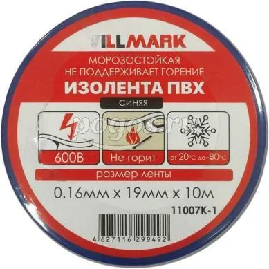 Изолента ХБ 19мм*10м синяя WILLMARK, артикул: 11007К-1