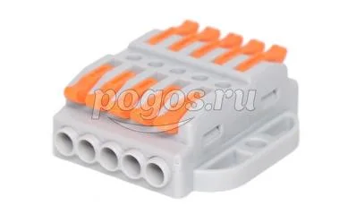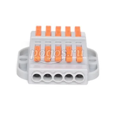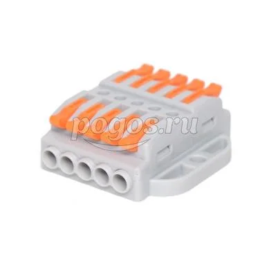 Клемма проходная СМК 222-425Р 5 полюсов с монтажной площадкой 10х(0,1-2,5мм²), серая, артикул: 07-6265