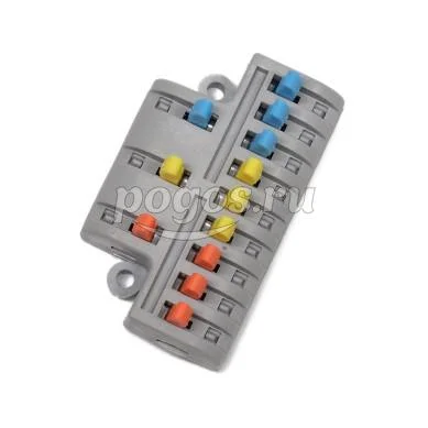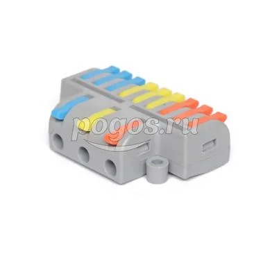 Клемма проходная СМК 3х3 разветвительная 3 полюса, с монтажной площадкой (1ввод, 3вывода на полюс), артикул: 07-5232