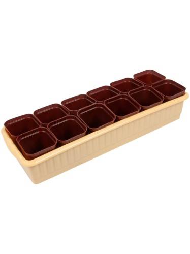 Комплект :12 рассадников Дом и дача 0,25л+поддон коричн