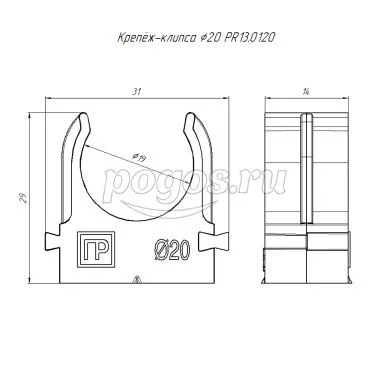 Крепеж-клипса для труб для монтажного пистолета серый 20мм Промрукав, артикул: PR13.0120