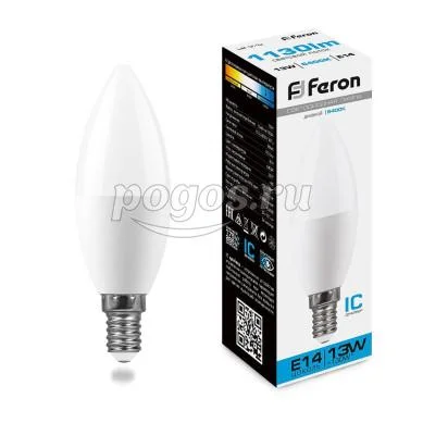 Лампа светодиодная 13W 230V E14 6400K C37, LB-970, свеча, артикул: 38109