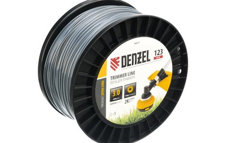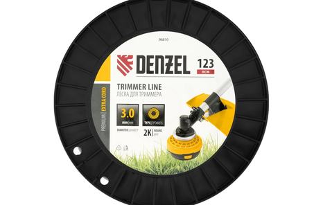 Двухкомпонентная леска для триммера Denzel EXTRA CORD 96810 размером 3,0 мм, 123 м, с круглым сечением, на DIN-катушке, предназначена для работы с бензотриммерами с объемом двигателя 25-52 см3.