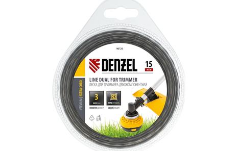 Двухкомпонентная леска Denzel Extra cord 96126 размером 3 мм х 15 м, с квадратным сечением, предназначена для использования с высокопроизводительными бензотриммерами мощностью не менее 1500 Вт. Благодаря наличию высокопрочного сердечника рабочий ресурс корда увеличен на 40% по сравнению с однокомпонентными лесками. Леска идеально подходит для срезания сухостоя, травы любой жесткости, небольших кустарников и бурьяна на участках любой сложности.