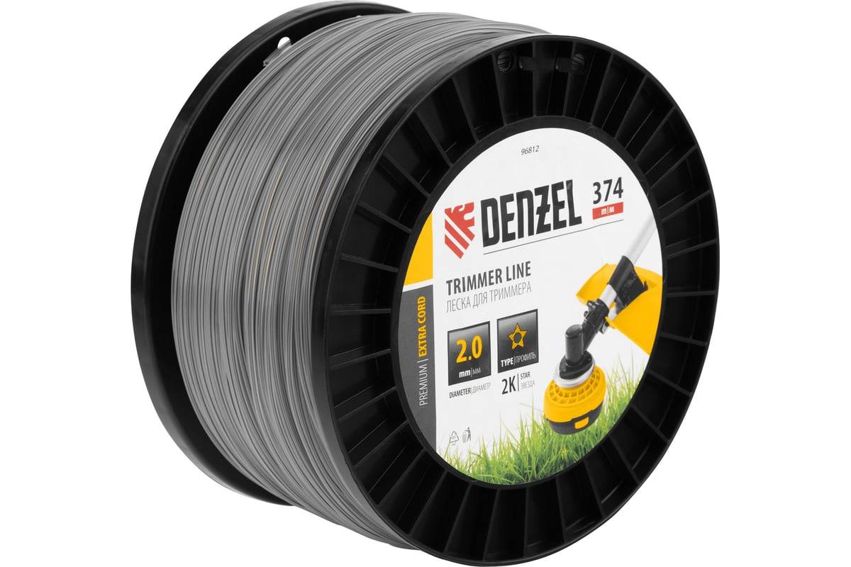 Леска для триммера двухкомпонентная звезда 2,0мм (катушка 374м) на DIN катушке EXTRA CORD DENZEL, артикул: 96812