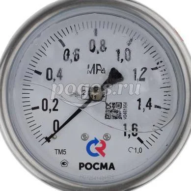 Манометр ТМ-520Р.00 (0...1,6 МРа) М20*1,5 кл. точн.-1.0 (с глицерином) РОСМА, артикул: ЦБ-00000688