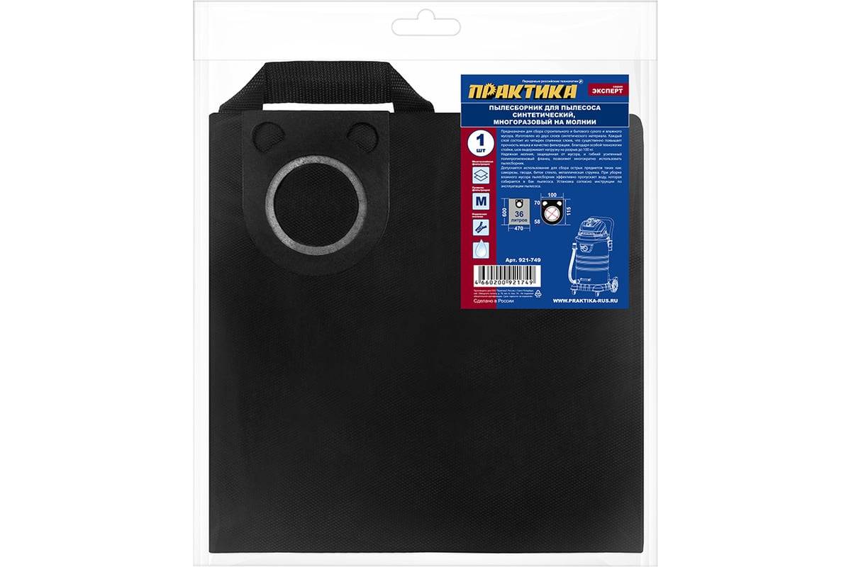 ногоразовый синтетический мешок позволяет не беспокоится о запасе пылесборников, особенно это актуально в случаях редкого и эпизодического использования пылесоса. Хорошо выдерживает многократные циклы использования. Молния дополнительно защищена от мусора, фланец усилен.