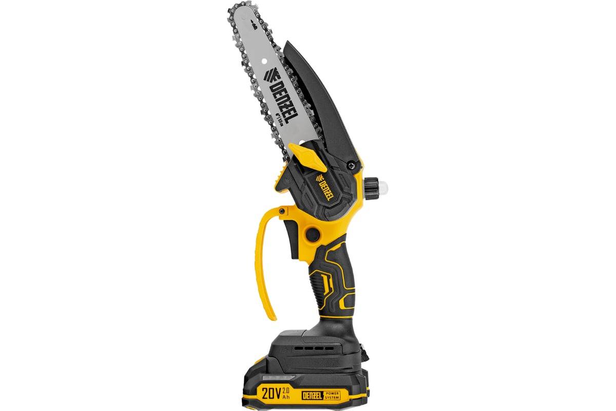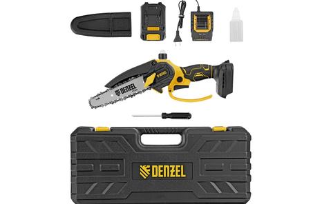 Мини-пила цепная акк бесщет. 20В шина 150мм (2Ач Li-ion и ЗУ) CCS-150 DENZEL, артикул: 58650