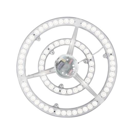 Светодиодный модуль со встроенным драйвером с артикулом 02-30 предназначен для замены стандартных ламп, а также современных светодиодных источников свечения, которые уже повсеместно используются в настенно-потолочных светильниках.Преимуществами изделия является его конструкция, которая повышает степень освещенности, а также большая площадь охлаждения, которая увеличивает срок службы. Световой поток равен 4450 Лм, что эквивалентно 440 Вт. Цветовая температура равна 6400 К, что соответствует холодному белому цвету свечения, который повышает концентрацию, настраивает на рабочий лад. Форма изделия круглая с диаметром 282 мм и толщиной драйвера 25 мм. Изделие работает от напряжения 220 В и не требует дополнительных устройств для подключения. Благодаря отсутствию мерцания светового потока отлично подходит для использования в жилых помещениях, а также административных, медицинских и производственных учреждениях.