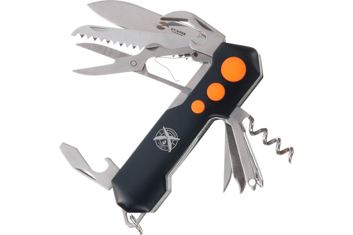 Мультитул 15 функций материал рукояти:алюминий черный/оранжевый Stinger