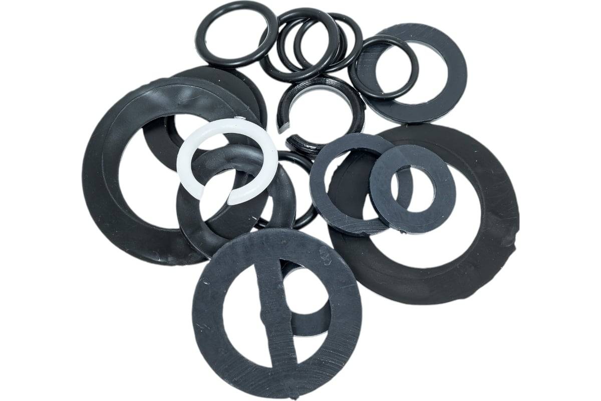 Набор прокладок подходит для ремонта широкого спектра самых распространенных смесителей.