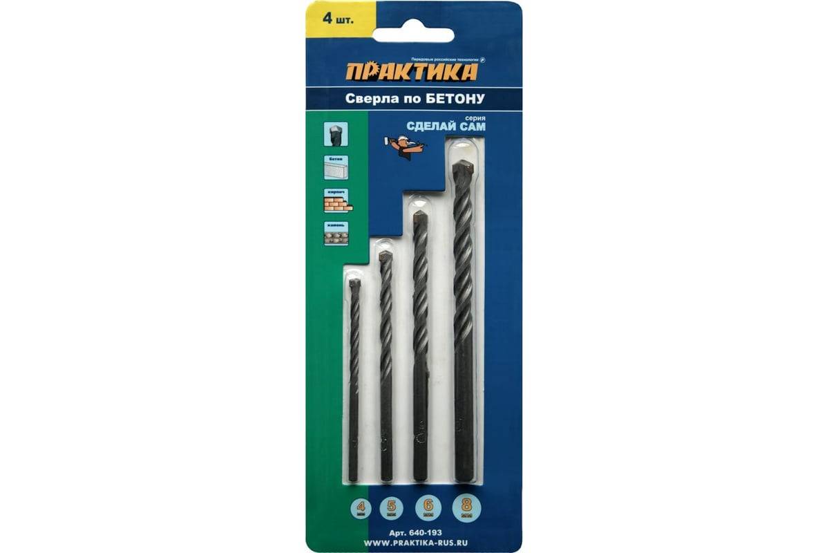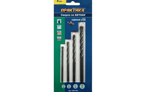 Набор сверл по бетону 4 шт 4 5 6 8 мм ПРАКТИКА, артикул: 640-193