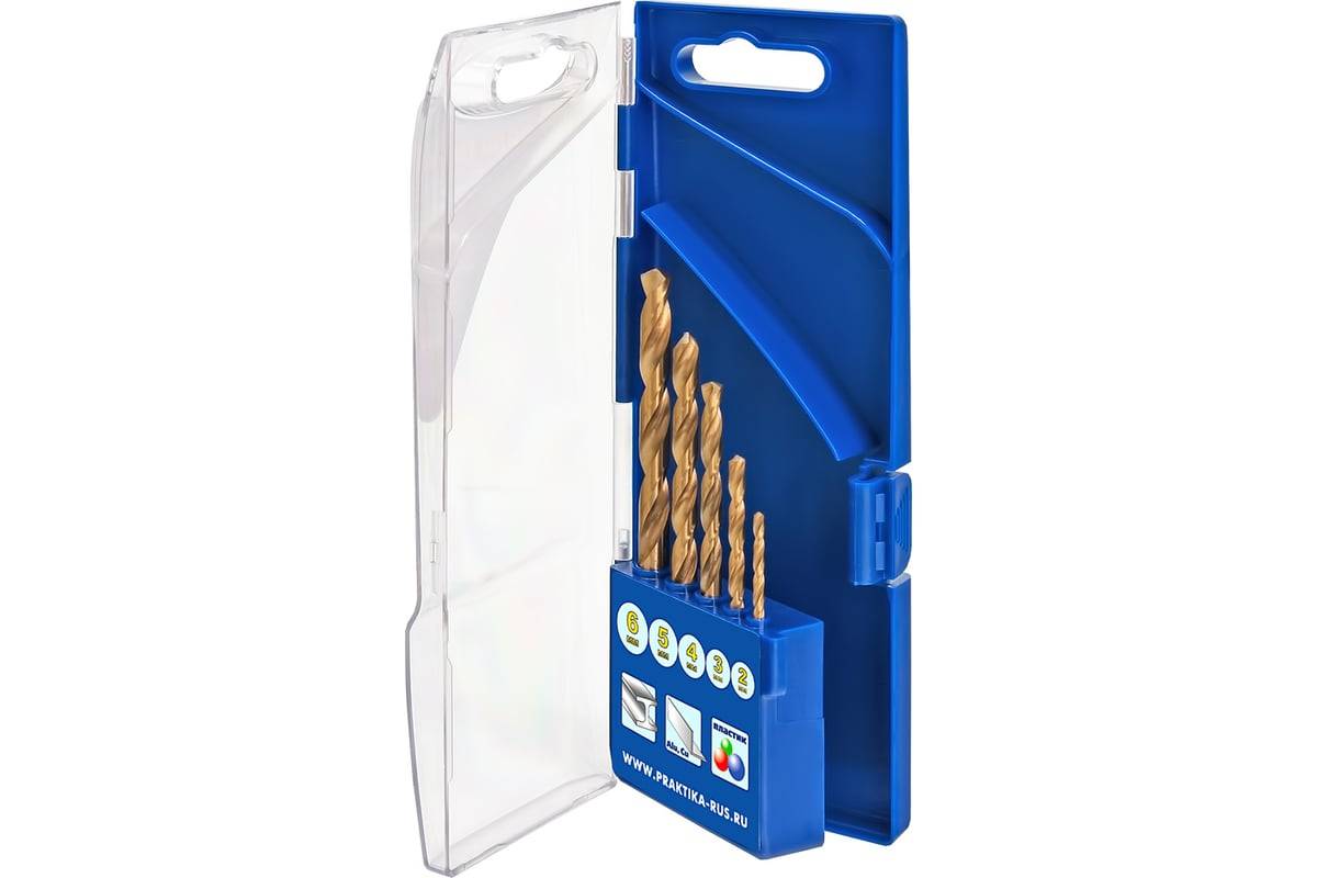 Набор сверл по металлу нитрид титана 5 шт 2 3 4 5 6 мм ПРАКТИКА, артикул: 640-247