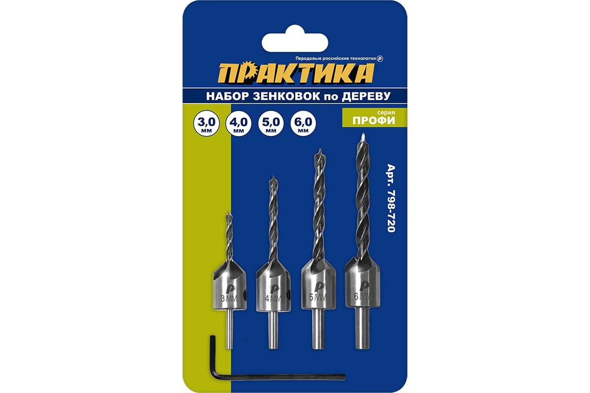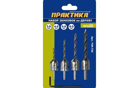 Набор зенковок по дереву 3, 4, 5, 6 мм ПРАКТИКА, артикул: 798-720
