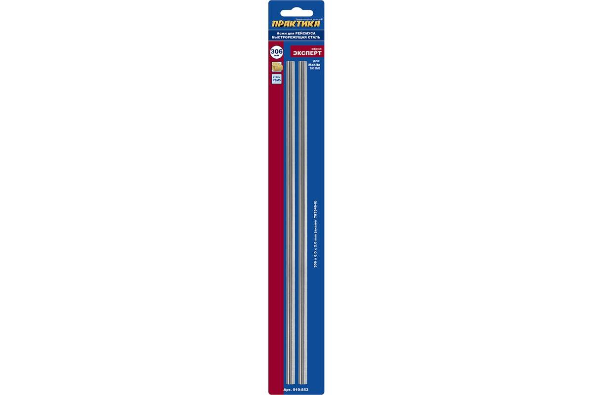 Нож для рейсмуса 2 шт, 306x8х2.0 мм, быстрорежущая сталь для Makita 2012NB ПРАКТИКА 919-853 предназначен для строгания деревянных поверхностей с использованием электрического рейсмуса.