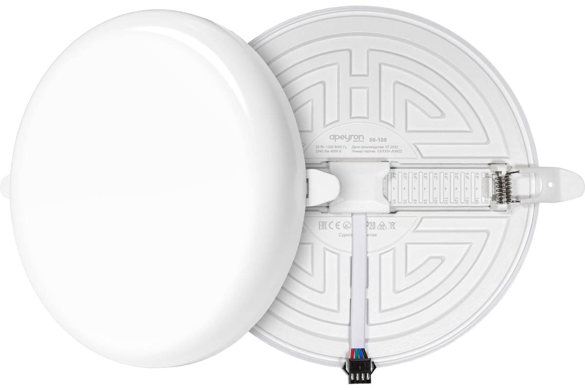Преимущества Apeyron flp 16вт=12вт+4вт, 1360лм, 4000к, ip20, ф120x21мм, круг, 3 режима, регулировка ф55-105мм/ 06-106