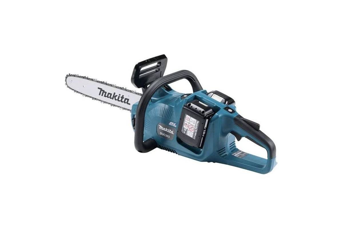 Аккумуляторная цепная пила Makita DUC353RF2 используется на лесозаготовке для спила ветвей и мелких сучьев. Также может применяться службами благоустройства и озеленения городов и других населённых пунктов. Используется частными мастерами для изготовления скульптур изо льда или древесины. Подходит для вырезания проруби. Работает от двух аккумуляторов 18В LXT, обеспечивающих рабочее напряжение 36В. Имеет инерционный тормоз цепи для безопасности оператора. Смазывание цепи выполняется в автоматическом режиме.