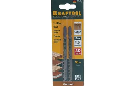 Пилки для лобзика по дереву ДСП фанере чистый рез 90мм шаг 2-3мм EU T234X 2шт KRAFTOOL