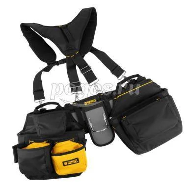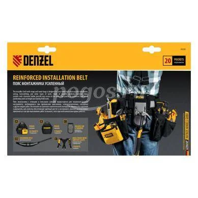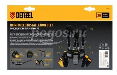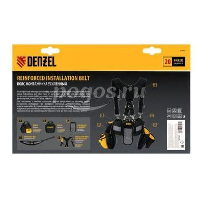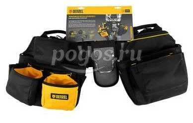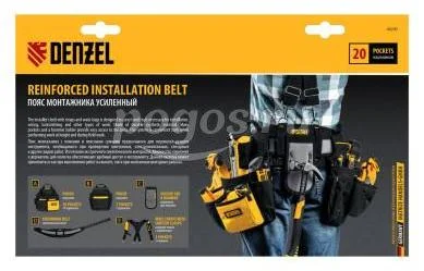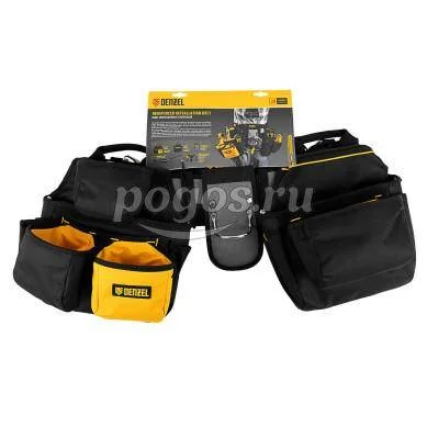 Пояс монтажный усиленный, с лямками, сумки поясные, держатель для молотка DENZEL, артикул: 90290