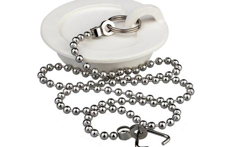 Пробка для ванны/раковины белая цепочка нерж сталь 45 см