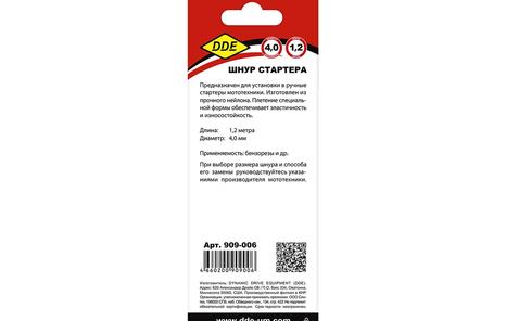 Шнур стартера 4,0мм*1,2м DDE, артикул: 909-006