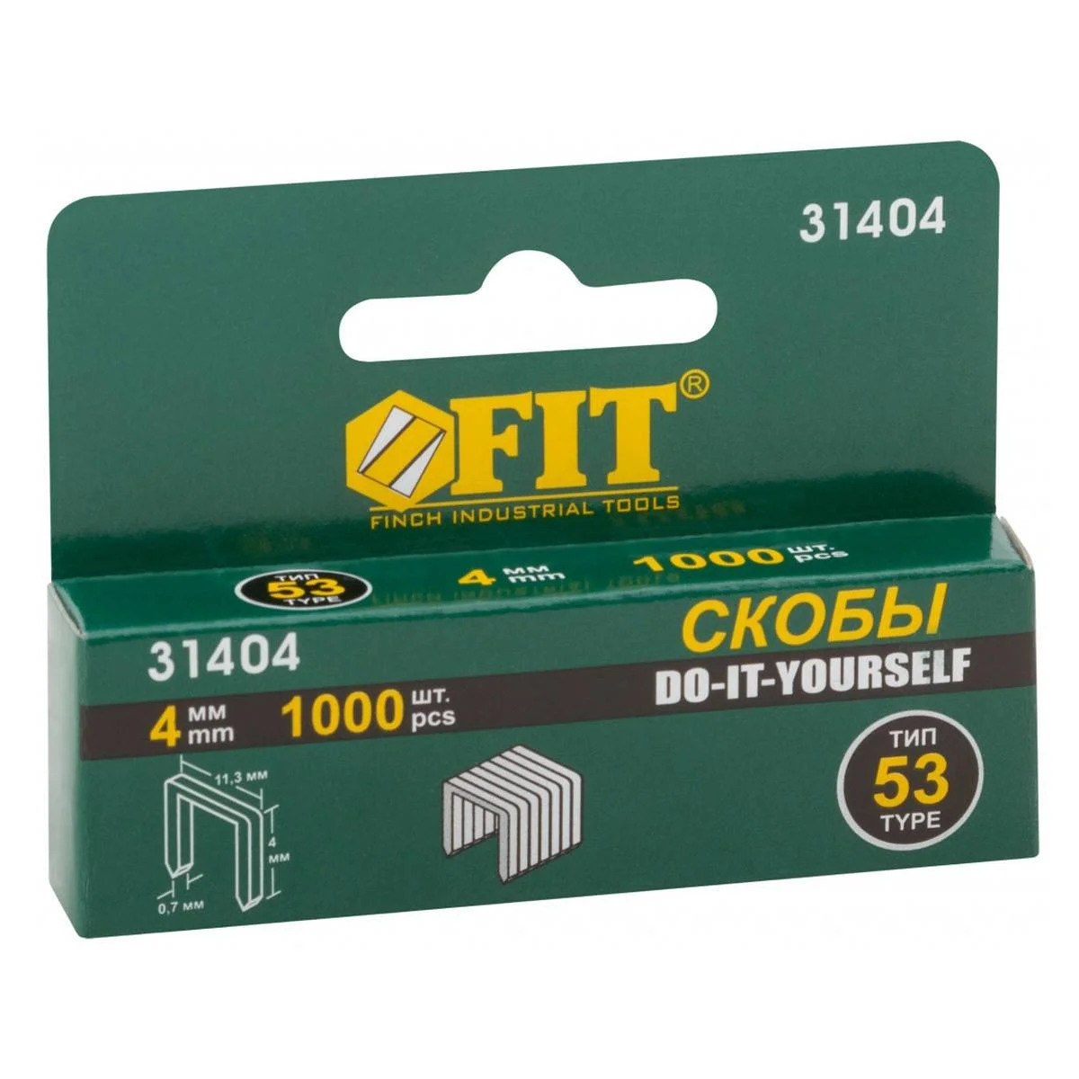 Скобы мебельные закаленные тип 53 4мм (1000шт) FIT, артикул: 31404