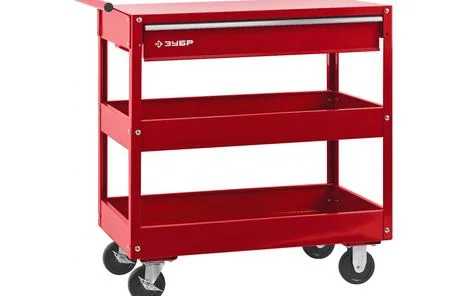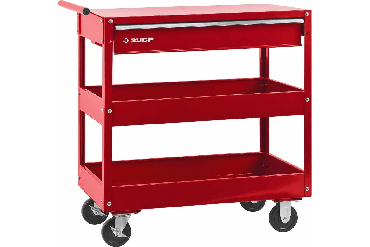 Инструментальная тележка ЗУБР 1 ящик + 2 полки, 737x383x785 мм 38912 позволит комфортно организовать рабочее место с легким доступом ко всем инструментам.