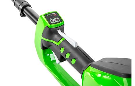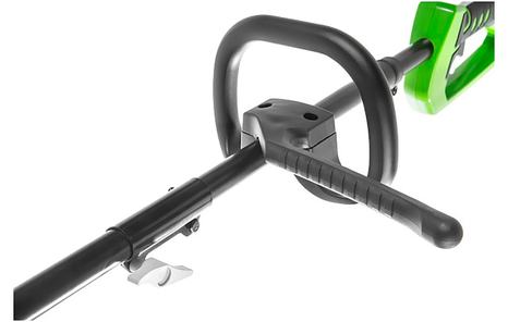 Аккумуляторный триммер Greenworks GD40BC оборудован бесколлекторным электромотором постоянного тока, изготовленным по технологии DigiPRO Brushless. Благодаря повышенному вращающемуся моменту устройство характеризуется улучшенной производительностью. Приводной узел, размещенный в верхней части составной штанги, передает вращение на косильную головку с помощью внутреннего вала.