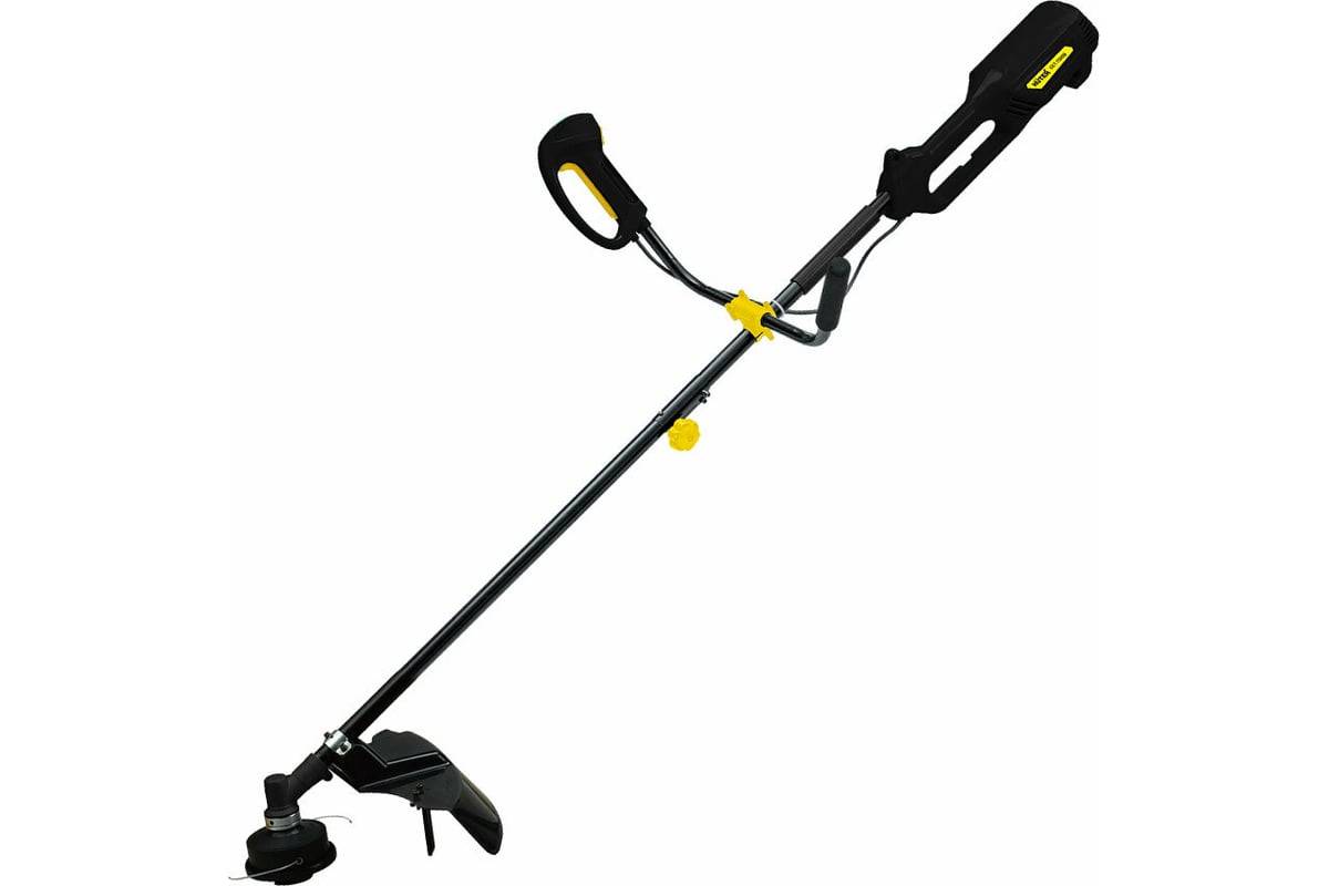 Компактный за счет разборной штанги и небольшого корпуса электрический триммер не займет много места при хранения. Так же стоит отметить небольшой вес - всего 6,5 кг. Мощность двигателя электротриммера составляет 1500 Вт, этого достаточно для скашивания травы, сухостоя и мелкой древесной поросли. Сохранить оптимальную температуру позволяет наличие воздушного охлаждения. Верхнее расположение двигателя защищает от попадания мелкого мусора и воды при кошении влажной травы.