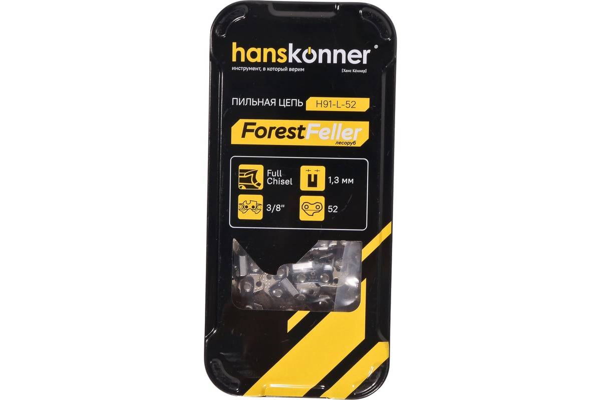 Цепь для пилы 52 зв. (3/8", 1.3мм) квадратный зуб Hanskonner, артикул: H91-L-52
