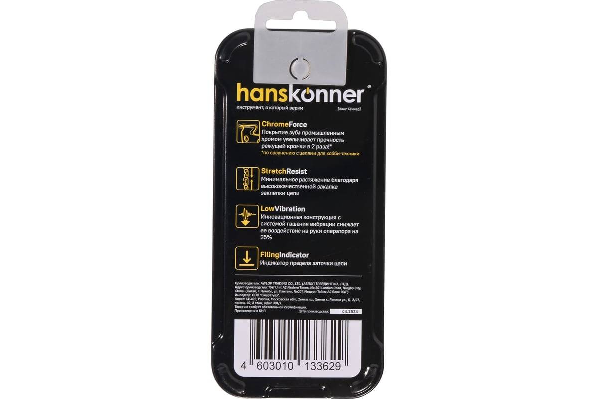 Цепь для пилы 52 зв. (3/8", 1.3мм) квадратный зуб Hanskonner