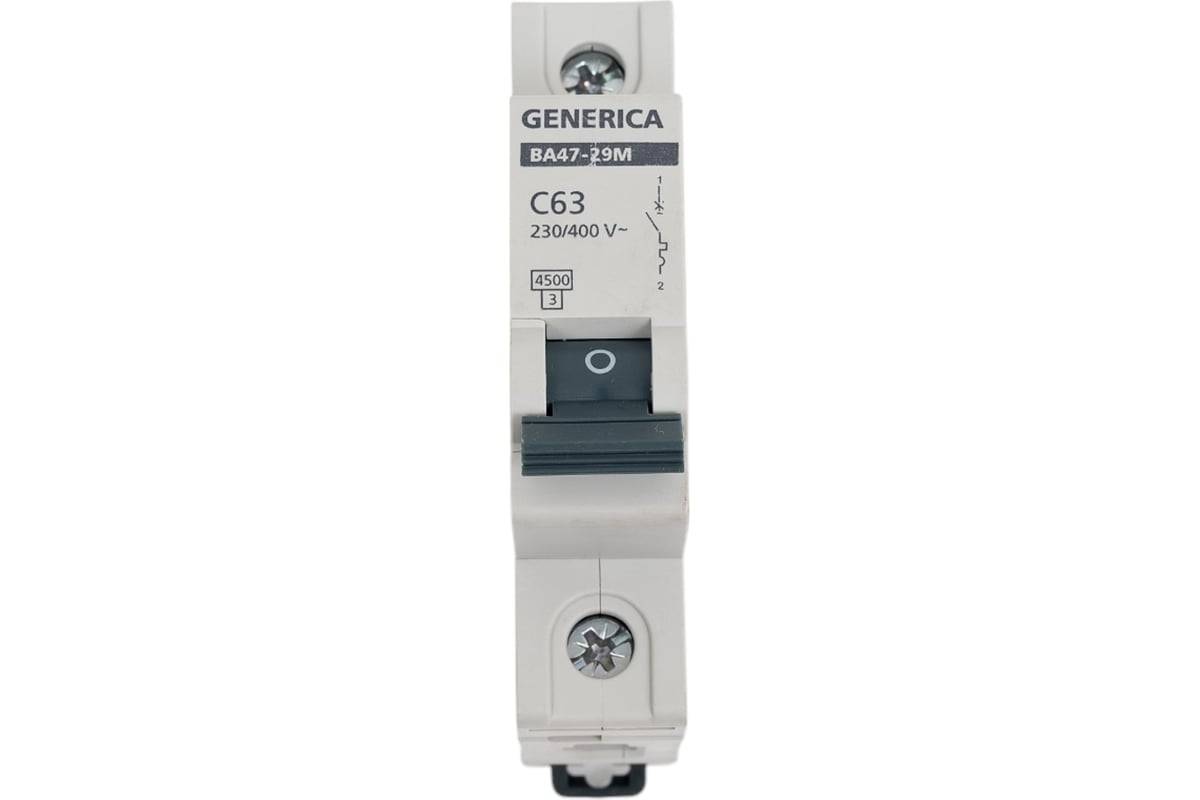 Выключатель автоматический ВА47-29М 1п C 63А 4.5кА GENERICA, артикул: MVA21-1-063-C-G