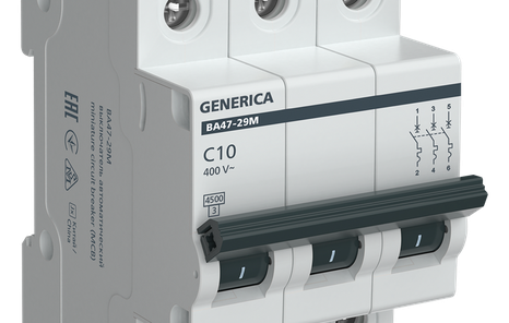 Выключатель автоматический ВА47-29М 3п C 10А 4.5кА GENERICA