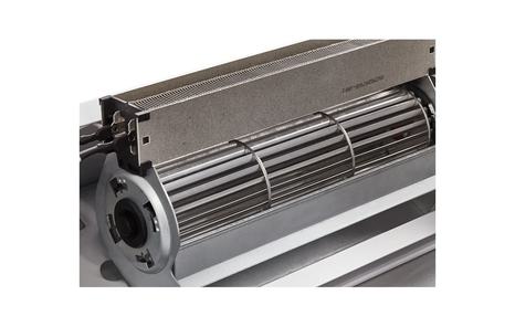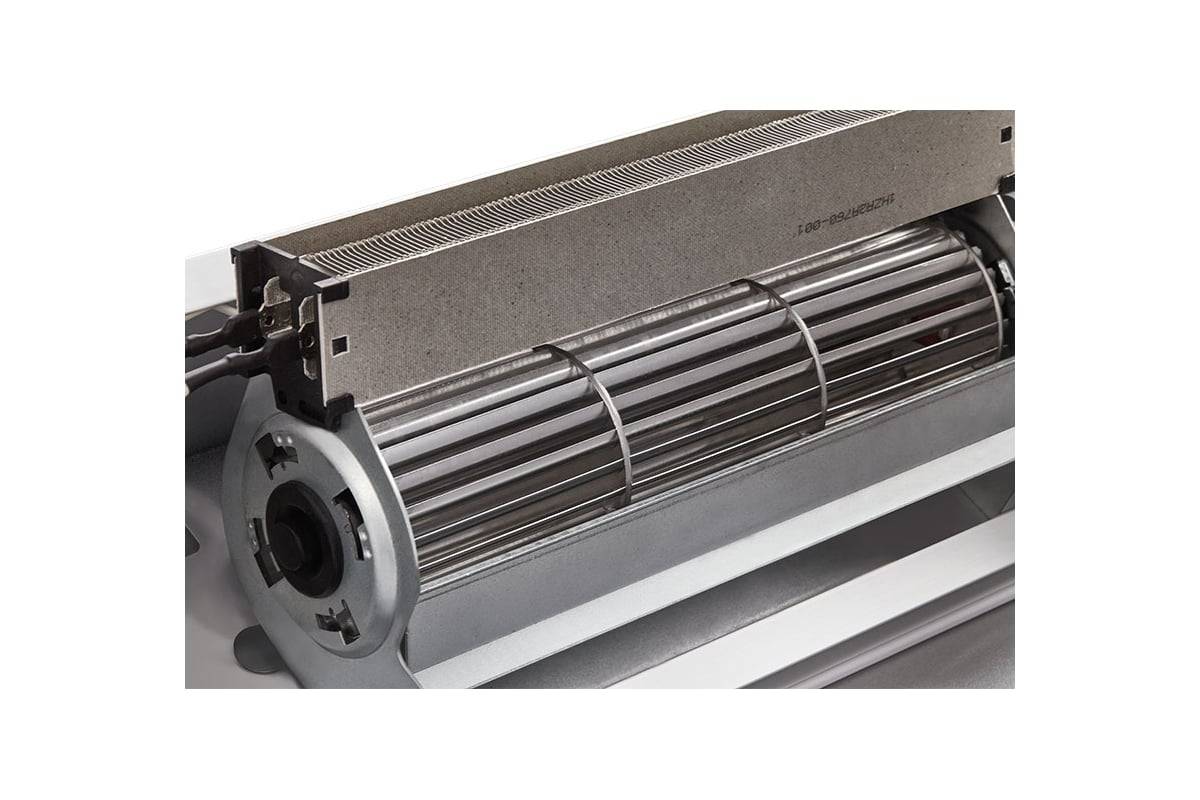 Передняя панель без перфорации блокирует распространение шума от вентиляционных колес направляя его в потолок, а не в проходящих людей, что делает завесу значительно тише аналогов вклассическом корпусе.