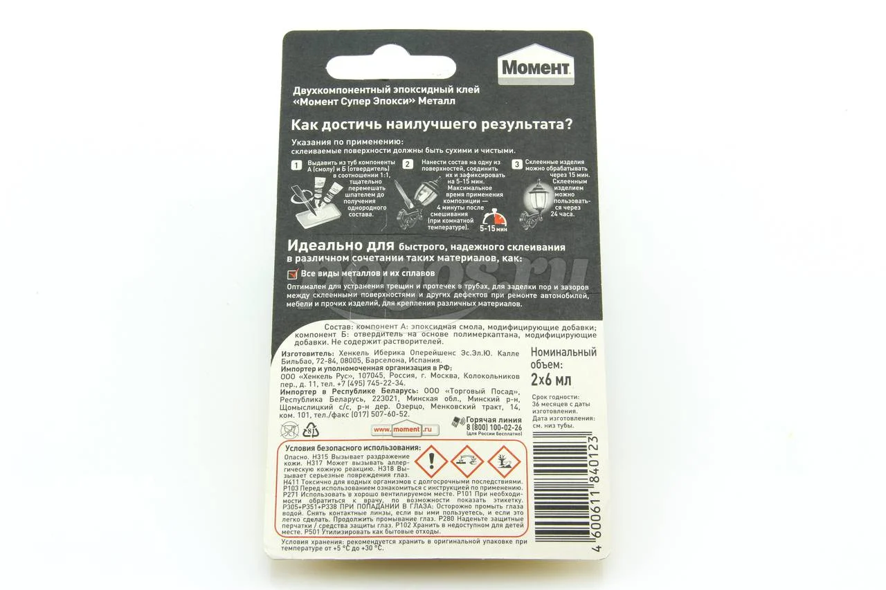 Клей эпоксидный 2х6мл блистер Супер Эпокси Металл МОМЕНТ, артикул: 1371325